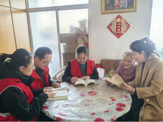 上党课忆党史,红色初心润人心。为保障老党员“学习上不‘缺课’、思想上不‘掉队’”,街道“送学小分队”带着最新理论学习资料登门,与老党员逐字逐句学习,深入交流感悟。“我入党50年了,始终记得入党时的誓言,不管什么时候都不能忘、不能丢。”老同志的话让在场青年党员深受触动,大家纷纷表示,要以老党员为榜样,牢记党员初心,践行党员使命,为街道发展贡献力量。