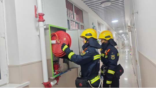 演练前,消防员以“身边的消防安全”为主题,通过生动案例讲解火灾成因、初期火灾扑救方法及逃生注意事项。针对校园场景,重点演示了如何正确佩戴防毒面具、使用灭火器,还特别提醒师生“逃生时要弯腰捂口鼻,不贪恋财物、不乘坐电梯”,将专业知识转化为易懂易记的实用技巧。随着一声清脆的警报声,演练正式开始。模拟教学楼某教室“起火”后,浓烟迅速弥漫,班主任与社区志愿者立即组织学生用湿毛巾捂住口鼻,按照预设逃生路线弯腰快速疏散;各楼层志愿引导员手持指示牌,有序指挥学生避开“火源”,向操场安全区域集结。仅3分钟,全体师生便安全撤离,随后各班清点人数并向总指挥汇报,整个过程紧张有序、配合默契。疏散结束后,消防救援人员还组织师生开展“实战”体验。现场设置模拟火点,学生代表在消防员指导下拿起灭火器,按照“提、拔、握、压”的步骤扑灭明火,亲身感受灭火过程。学生说道:“以前只在课本上学过消防知识,这次亲手用了灭火器,以后遇到紧急情况我也知道该怎么做了。”