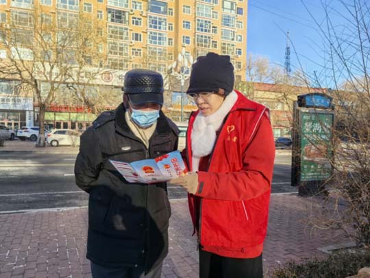 宣传活动中,社区工作人员与志愿者组成宣传小队,分场景、分人群开展精准宣传。在社区广场、菜市场、小区出入口等人员密集区域,向过往居民逐一发放宣传单,结合真实案例讲解“宪法如何保障我们的生活”,从儿童受国家保护、公民享有平等教育权,到劳动者的休息权、老年人的物质帮助权,用家常话解读宪法核心要义。发放讲解过程中,工作人员还针对居民关心的婚姻家庭、邻里纠纷、权益保障等问题,结合宣传单内容现场答疑,引导居民树立“遇事找法、解决问题用法、化解矛盾靠法”的法治观念。让大家真切感受到宪法不是遥远的法条,而是守护日常的“权利保障书”。