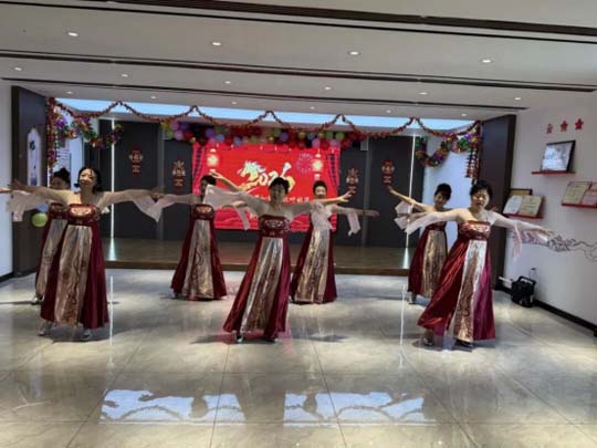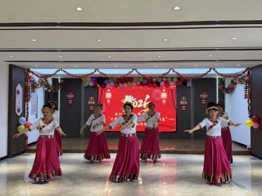 联欢会在热情洋溢的开场舞《欢聚一堂》中拉开帷幕,欢快的节奏瞬间点燃了现场的气氛。随后,手绢舞、非洲鼓、独唱等各类节目轮番登场、精彩纷呈。手绢舞《大陕北子妞》舞姿豪迈,展现出浓郁的地方风情;藏族舞《圣洁与你同在》与《北京金山上》衣袂翩跹,将雪域高原的祝福送到每个人心间;古典舞《秋水伊人》如诗如画,尽显东方婉约之美;铿锵有力的非洲鼓表演《母亲是中华》,更以激昂的节奏表达对祖国的深情,赢得阵阵掌声。活动现场还穿插设置了“珠行万里”“纸杯叠叠乐”“盲眼吸吸乐”等富有趣味的互动游戏。居民们热情高涨、踊跃参与,现场加油声、欢笑声此起彼伏。大家在轻松欢乐的互动中增进了交流,拉近了彼此距离,进一步增进了邻里关系。