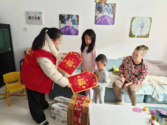 活动中,社区工作人员与志愿者们化身“爱心使者”,带着鸡蛋、牛奶等慰问品,分别前往孩子们家中,与孩子及其监护人亲切交谈。工作人员耐心倾听孩子们的心声,询问他们的学习进度、生活难题,鼓励孩子们要勇敢面对困难、勤奋学习、乐观生活,始终保持积极向上的心态。同时,工作人员还叮嘱监护人要悉心照料孩子的生活与学习,遇到困难及时向社区反映,社区将持续为孩子们的健康成长保驾护航。收到慰问品的孩子们脸上洋溢着纯真的笑容,一声声“谢谢阿姨”温暖了在场每个人的心。小小的慰问品承载着大大的关爱,不仅为孩子们的生活带来了实际帮助,还让他们在寒冬中感受到了浓浓的亲情与归属感。