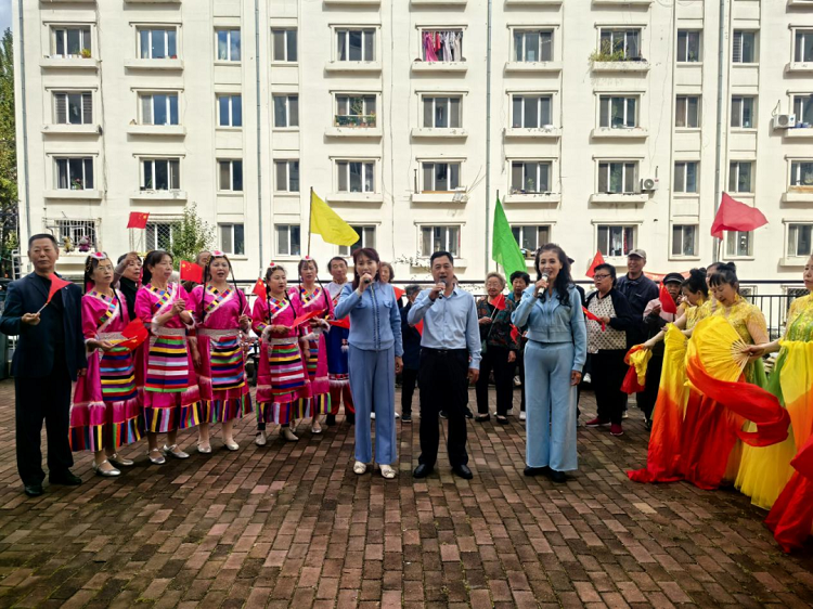 活动伊始,社区工作人员与居民代表共同为小区门口悬挂国旗,营造出“国旗处处飘,家国情怀浓”的浓厚氛围。随着《义勇军进行曲》奏响,居民们自发肃立,齐声高唱,激昂的旋律回荡在小区上空,每一句歌词都饱含着对祖国的无限热爱与祝福。“开饭咯!”伴随着一声吆喝,小区内的大铁锅前升腾起阵阵热气。社区精心准备了象征“祖国万寿无疆”的长寿面,工作人员与居民代表轮流上阵,烧水、下面,忙得不亦乐乎。面条绵长象征“长治久安”,汤汁滚烫寓意“生活红火”。一碗碗热气腾腾的面条递到居民手中,大家围坐在一起,边吃面边拉家常,浓郁的面香混合着邻里间的欢声笑语,温暖了整个小区。抗联老兵一等功臣获得者张大爷一边品尝面条,一边结合自身抗联经历,向在场居民讲述革命时期的峥嵘岁月,让大家在感受节日温暖的同时,深刻体会如今幸福生活的来之不易。活动最后,“红歌大家唱”环节将氛围推向高潮。《歌唱祖国》《我和我的祖国》等经典红歌响起,居民们手持小国旗,跟着旋律放声合唱,成为小区里最动人的“国庆赞歌”。