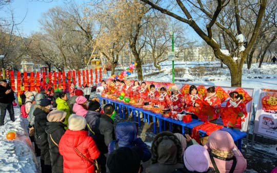 活动现场,秧歌队的精彩表演更是吸引了众多居民驻足观看。他们身着传统服饰,手持彩扇和绸带,在欢快的鼓点中翩翩起舞,展示了传统民俗风情的魅力。此外,驻区单位的职工也积极参与了年味大集活动,与社区居民共同欢度佳节,增进了社区与企业之间的联系。所有工作人员在活动当天都统一穿着具有东北特色的大花袄和大花帽子,成为活动现场的一道亮丽风景线。