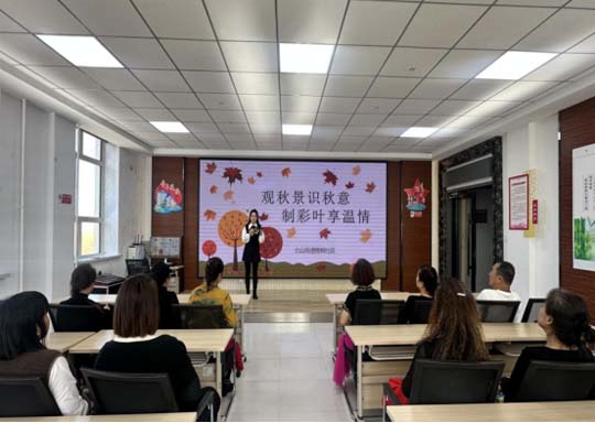 活动伊始,社区工作人员化身“自然讲师”,通过实物展示与趣味讲解,向居民介绍了枫叶、银杏叶、梧桐叶等常见秋叶的种类与特征,从叶片形状到叶脉纹路,细致的讲解让大家对身边的秋叶有了全新的认知。随后,工作人员播放了精心准备的鹤岗秋日风景图片,金黄的稻田、火红的枫林、铺满落叶的小径等画面轮番呈现,瞬间将现场氛围带入浪漫的秋日意境中,居民们不时发出赞叹,纷纷分享自己印象中的秋日趣事。