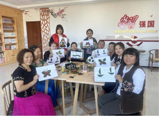 在手工创作环节,工作人员为大家分发了提前收集的各色秋叶、胶水、卡纸等材料。居民们充分发挥想象力,有的将叶子拼成灵动的蝴蝶,有的用叶子堆叠出憨态可掬的小动物,有的则搭配卡纸制作成别致的书签。现场氛围轻松愉悦,老人们相互交流技巧,不时传来欢声笑语。