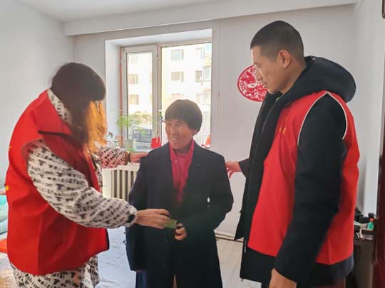 近日,向阳区胜利(南翼)街道南翼社区组织志愿者开展“寒冬送暖 陪伴暖心”关爱空巢老人志愿服务活动,为辖区内空巢老人送去贴心关怀。