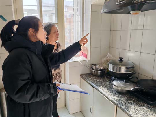 工作人员逐一走访辖区独居老人家庭,与老人促膝谈心,详细询问健康状况、饮食起居及冬季取暖情况,叮嘱老人注意防寒保暖、用火用电安全。针对行动不便老人,工作人员协助检查家中水电设施,代购生活物资,并留下联系卡片,承诺24小时响应需求,并为老人送上米、面、油等慰问品,用实际行动让老人感受到社区大家庭的温暖。