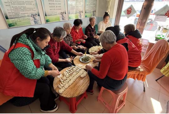 活动当天,志愿者们分工有序、积极配合。一组志愿者早早准备好面粉、馅料等食材,与老人们围坐在一起,揉面、擀皮,一边包饺子,一边和老人亲切唠着家常,现场气氛温馨又热闹。另一组志愿者则拿起清洁工具,认真打扫公寓公共区域,帮助整理老人房间、擦拭门窗、清理杂物,细致整理物品摆放,用心为老人们营造更加整洁、舒适的居住环境。清扫结束后,志愿者们围坐在老人身旁,耐心倾听他们讲述往事与生活点滴,详细询问其身体近况与日常需求,以真诚的陪伴驱散孤独,传递温暖。