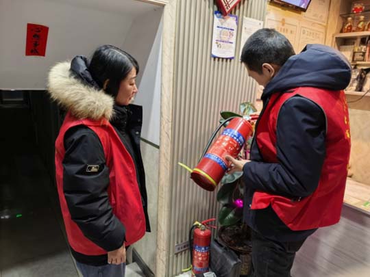 活动中,社区工作人员逐户走访,与商户负责人深入交流,仔细询问日常经营中的用火、用电、用气情况。排查坚持“不漏一户、不留死角”的原则,工作人员重点对灭火器是否配备齐全、是否在有效期内、压力指示是否正常、放置位置是否便于取用等进行了细致检查。同时,对店内电线敷设是否规范、疏散通道和安全出口是否畅通、是否存在违规存放易燃易爆品等隐患环节也进行了逐一排查。针对发现的部分灭火器临近过期、通道堆放杂物等问题,工作人员现场提出整改意见,耐心讲解消防安全知识和应急处置要点,并叮嘱商户要切实履行安全主体责任,克服麻痹思想,加强日常自查,及时消除隐患,真正做到防患于未然。